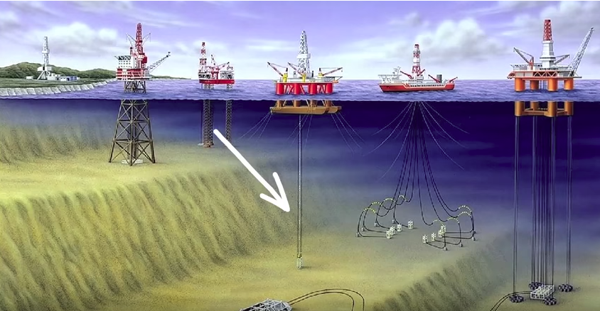 Добыча нефти и природного газа из глубин моря  с помощью надводных платформ
